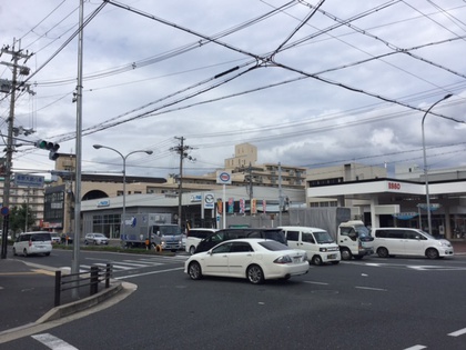 かどの大路八条、北東角にございます。かどの大路通りと八条通りのどちらからでも出入りが可能です。リニューアルした かどの八条店は、開放的なショールームで、ゆったりとおクルマをお選び頂けます。皆様のご来店を心よりお待ちしております。